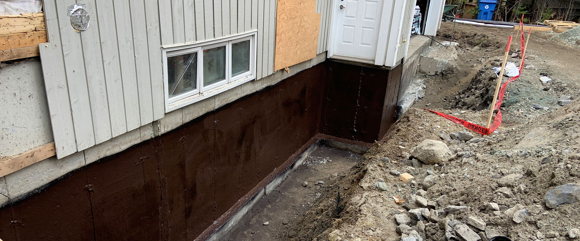 En fait, il se peut que les infiltrations soient le résultat du rehaussement du terrain le long des fondations. La partie hors sol des fondations est protégée par un crépi, lequel n’est pas parfaitement étanche; par conséquent, si on relève le niveau du terrain pour y aménager des plates-bandes, l’eau de pluie s’y accumule et peut créer des infiltrations d’eau par les attaches de coffrage. Il est possible de pallier le problème en installant une membrane sur les fondations afin d’en assurer l’étanchéité.